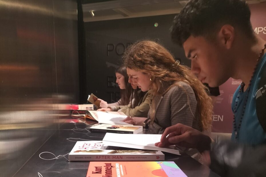 Un cop allà, tot el grup va tenir l’oportunitat de continuar la visita amb l’exposició gratuïta La invenció del temps, situada al Centre Martorell d’Exposicions, també dins del Parc de la Ciutadella. Aquesta mostra proposa una reflexió interdisciplinària sobre el concepte de temps, combinant perspectives de la biologia, la física, la neurociència, l’art i la literatura per entendre com el temps travessa tots els àmbits de la nostra existència, des de l’origen de l’univers i l’evolució de la vida fins a la percepció individual del pas del temps, la memòria, la planificació del futur i la consciència del present.